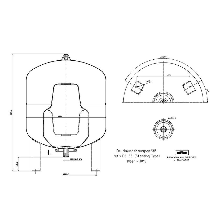 Provedení: Max.provozní tlak: 10 barů Objem: 33 l Průměr: 354 mm Výška: 520 mm
