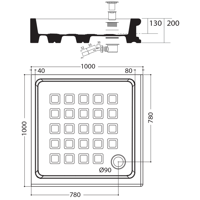 Parametry produktu RETRO keramická sprchová vanička, čtverec 100x100x20cm, bílá