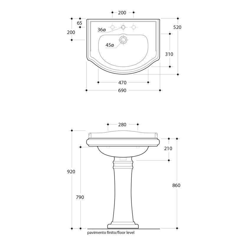 Parametry produktu  RETRO keramické umyvadlo 69x52cm, bílá