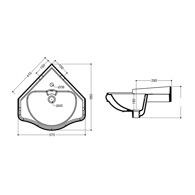 Rohové umyvadlo