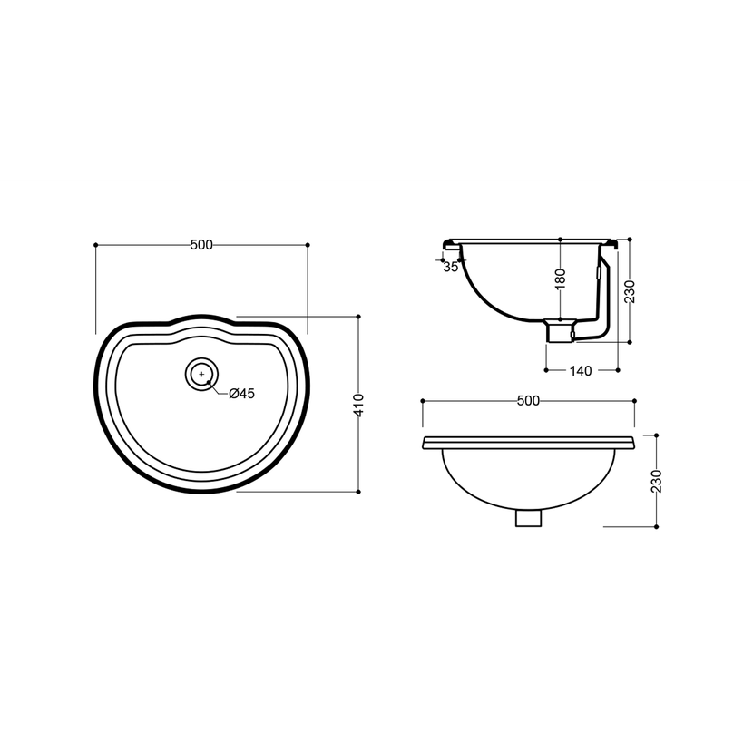 Parametry produktu  RETRO keramické umyvadlo zápustné, 50x41cm, bílá