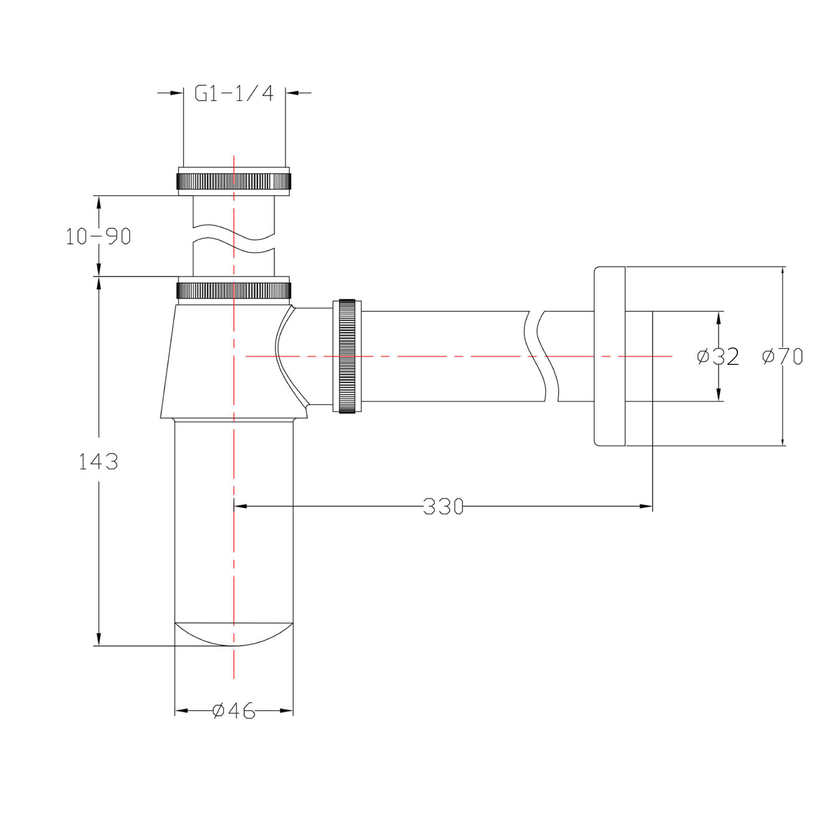 Parametry produktu  RETRO umyvadlový sifon 5/4", odpad 32mm, tmavý bronz