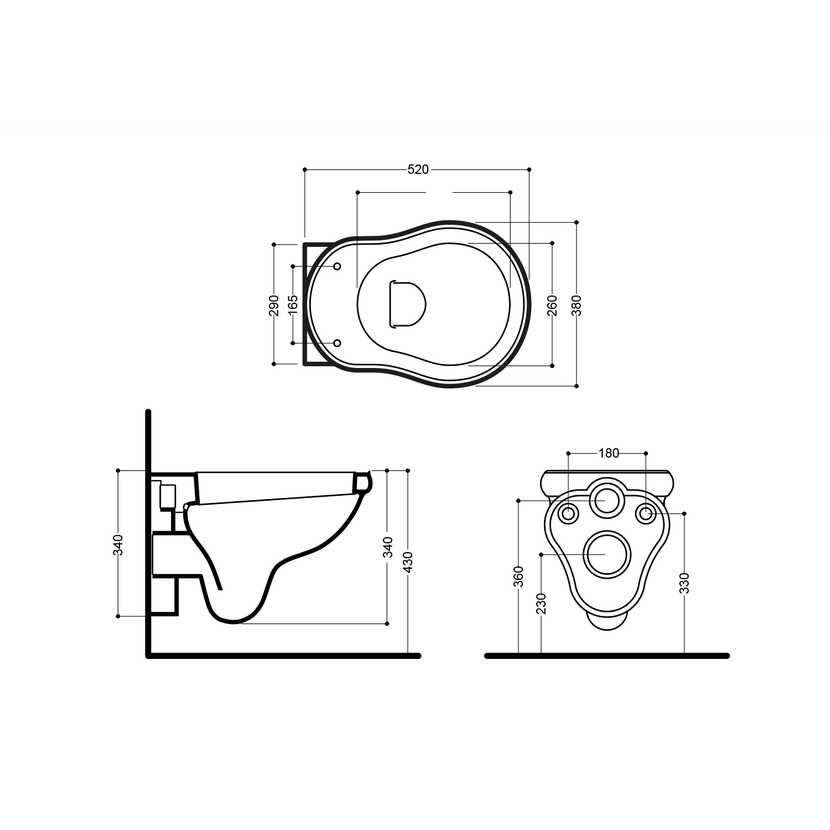 Parametry produktu  RETRO závěsná WC mísa, 38x52cm, bílá