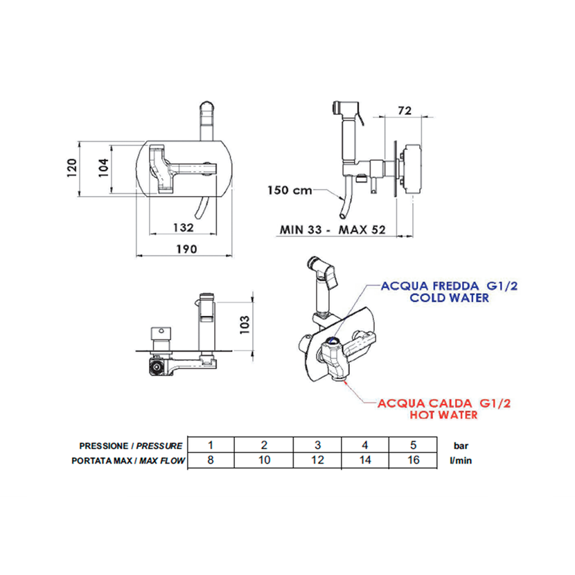 Parametry produktu  RHAPSODY podomítková bidetová baterie se Stop sprškou, kulatá, chrom