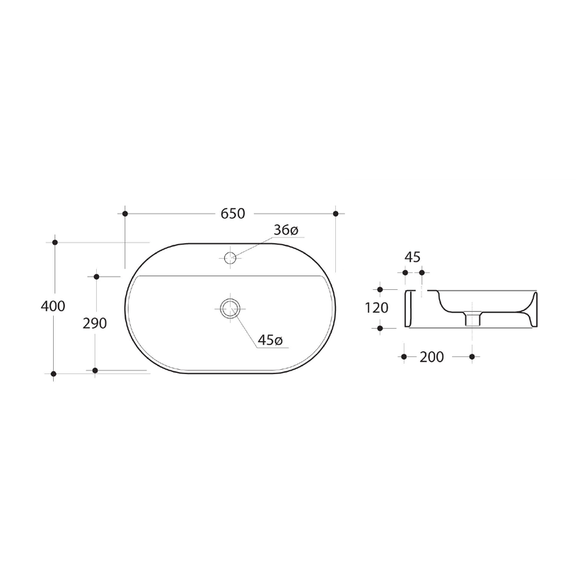 Parametry produktu  RING keramické umyvadlo na desku 65x40cm, bílá