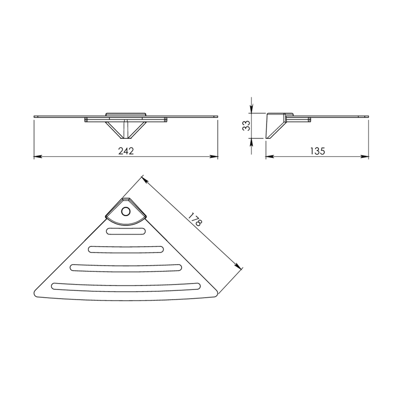 Parametry produktu Rohová police do sprchy, 178x178 mm, oblá, ABS/nerez lesk