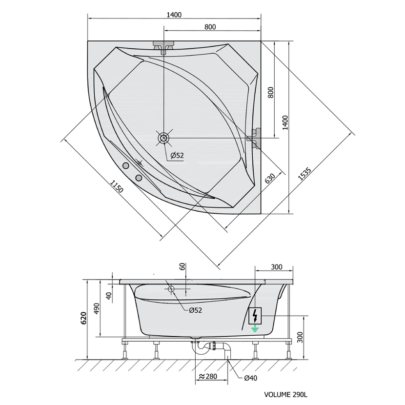 Parametry produktu ROSANA hydromasážní vana, 140x140x49cm, Attraction Hydro, chrom