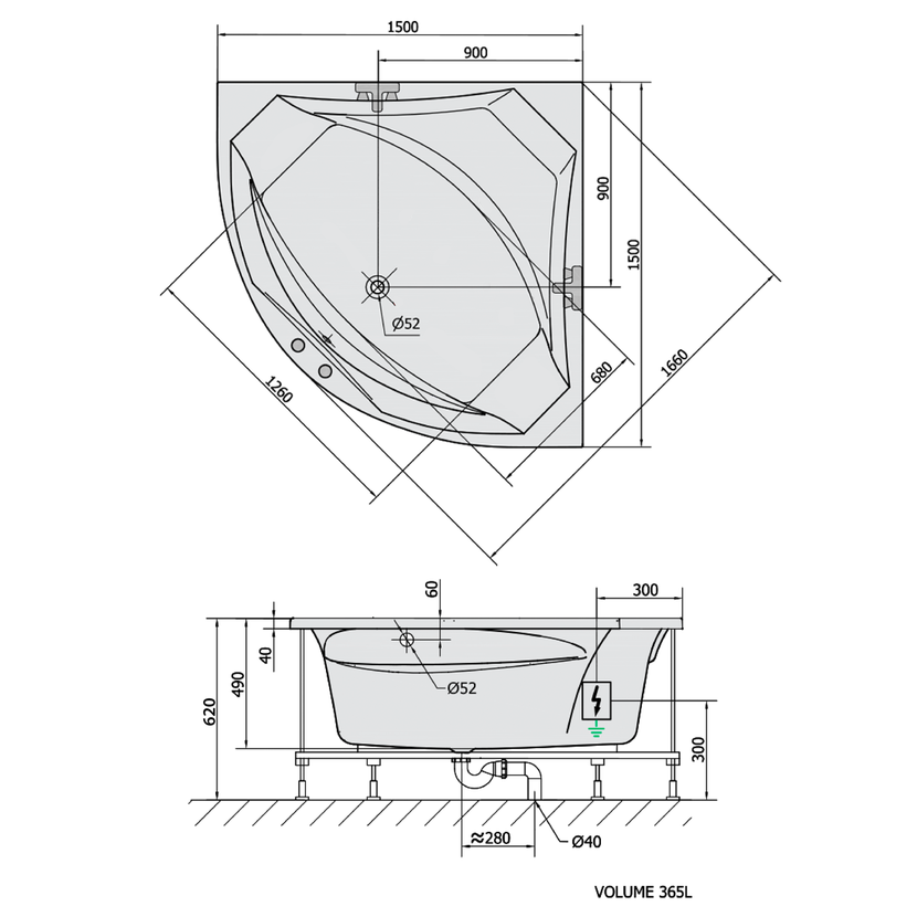 Parametry produktu ROSANA hydromasážní vana, 150x150x49cm, Highline Hydro, chrom