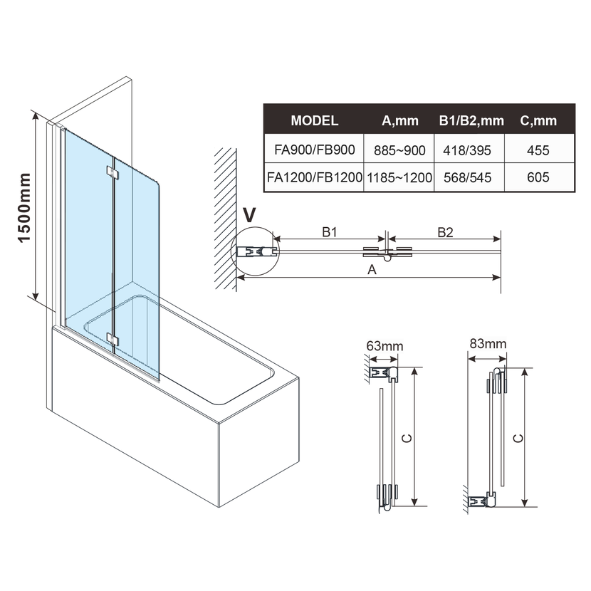 Parametry produktu ROTA vanová zástěna skládací 900mm, čiré sklo