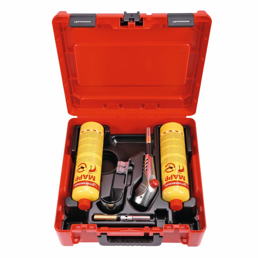 Sada hořáku s piezo zapalováním na tvrdé pájení v jakékoliv poloze do průměru 28 mm a měkké do průměru 35 mm, na jednorázové kartuše. Sada obsahuje: SUPER FIRE 3 rukojeť z kovové slitiny s jemnou regulací plynu a piezo zapalováním, aretací spouště, závit 7/16" EU (35455), hořáková tryska cyklónová 950°C (35457), hořáková tryska bodová 460°C (35455), reflektor plamene (31043), podstavec pro kartuši (35461), 2 ks MAPP kartuše 7/16" EU (035521-C), kufr ROCASE 4414 (1000001945)