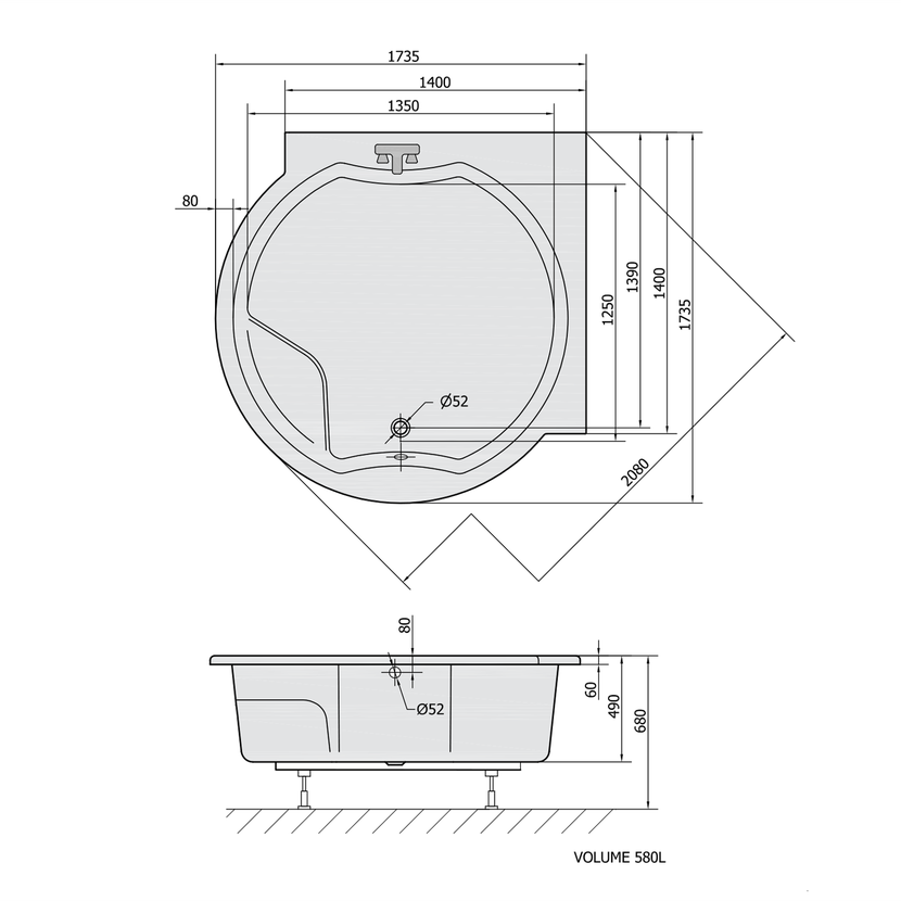 Parametry produktu  ROYAL CORNER kulatá vana s konstrukcí 173x173x49cm, bílá