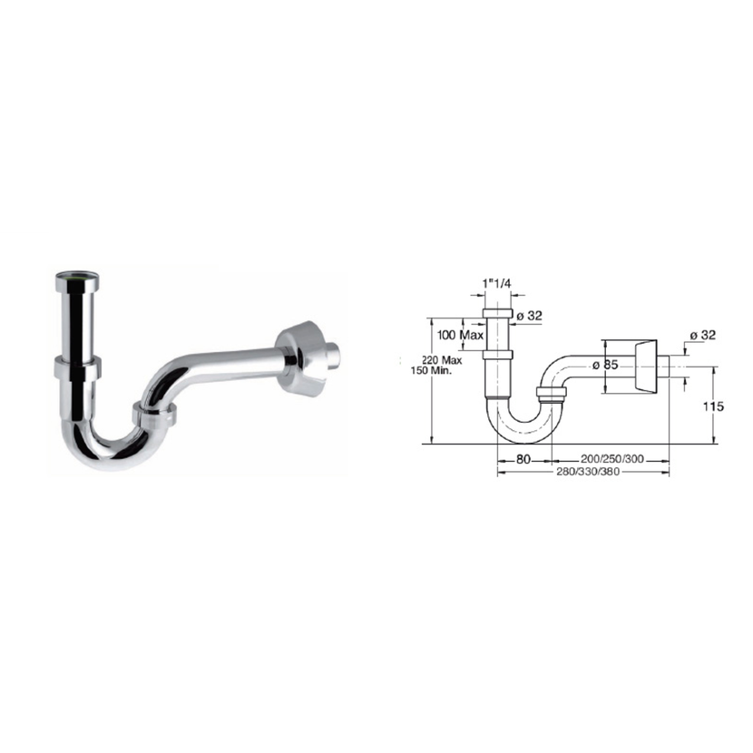 Parametry produktu  ROYAL FAMILY umyvadlový sifon 5/4", odpad 32 mm, chrom