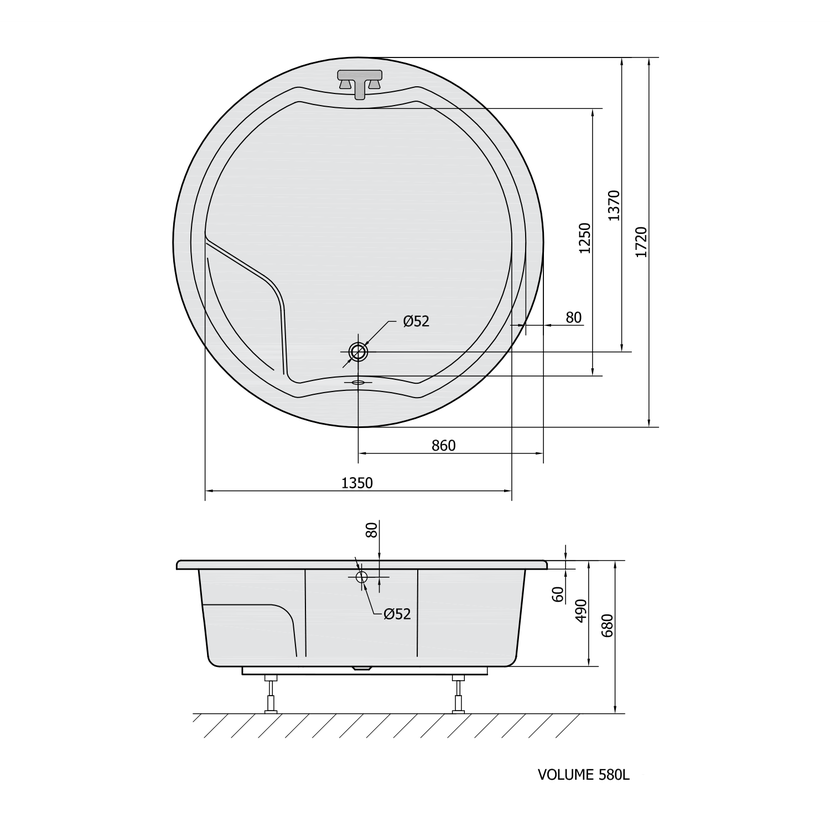 Parametry produktu  ROYAL ROUND kulatá vana s konstrukcí 172x172x49cm, bílá