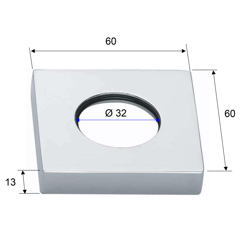 Parametry produktu  Rozeta hranatá 60/32mm, výška 13mm, chrom