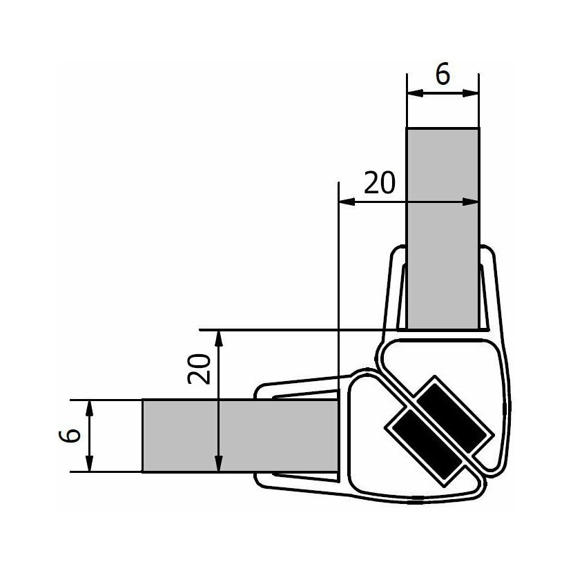 Parametry produktu  Sada dvou těsnění (magnet) na 6mm sklo, 2000mm, varianta roh