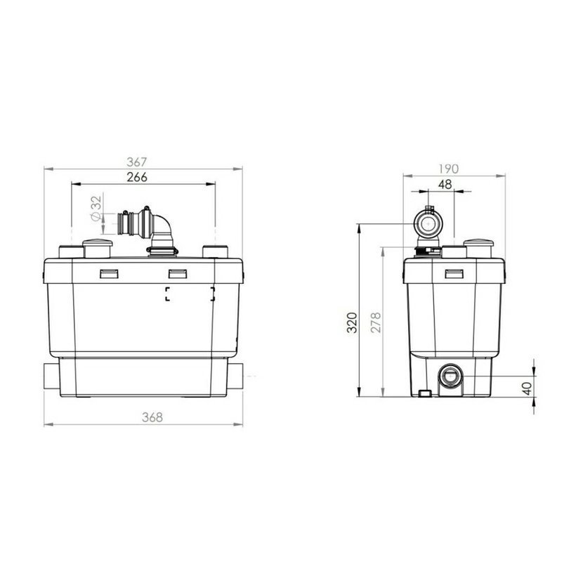 Průměr odpadního tlakového potrubí: 32 mm