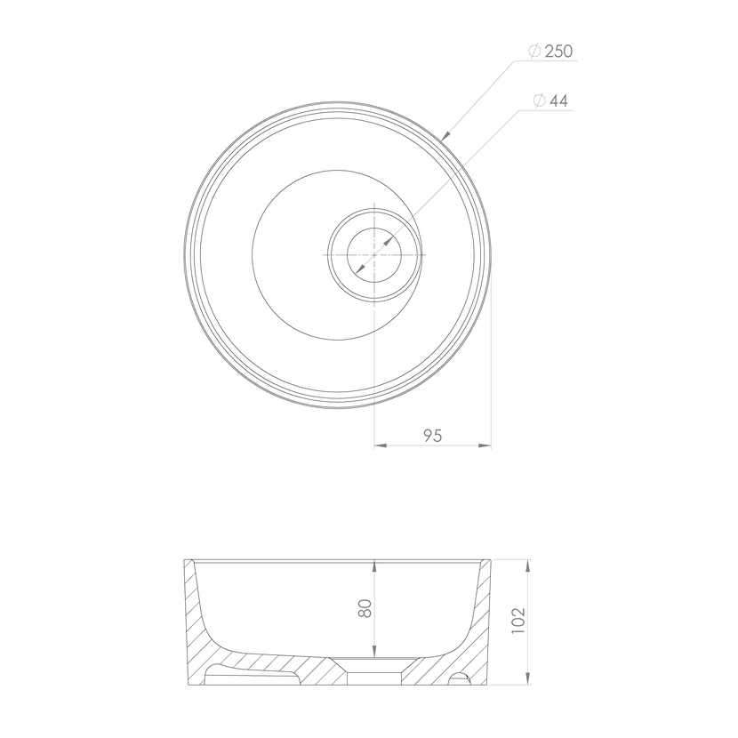 Parametry produktu SANNA umývátko na desku, litý mramor, průměr 25cm, bílá