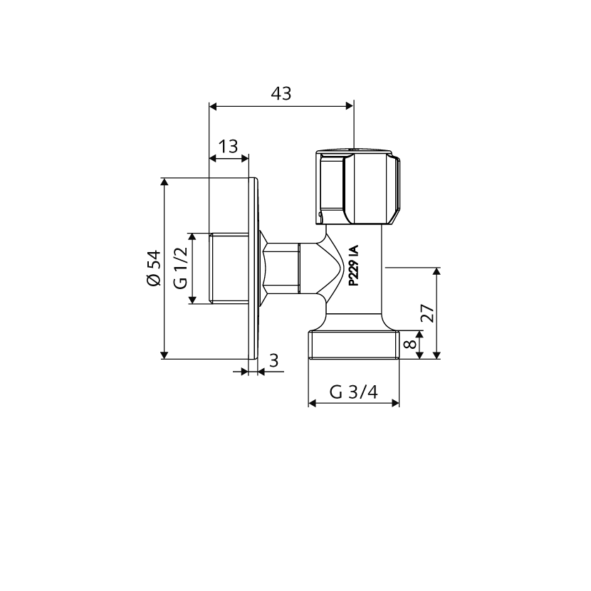 připojovací ventil s rukojetí COMFORT rozeta O 54 mm, výška 3,0 mm