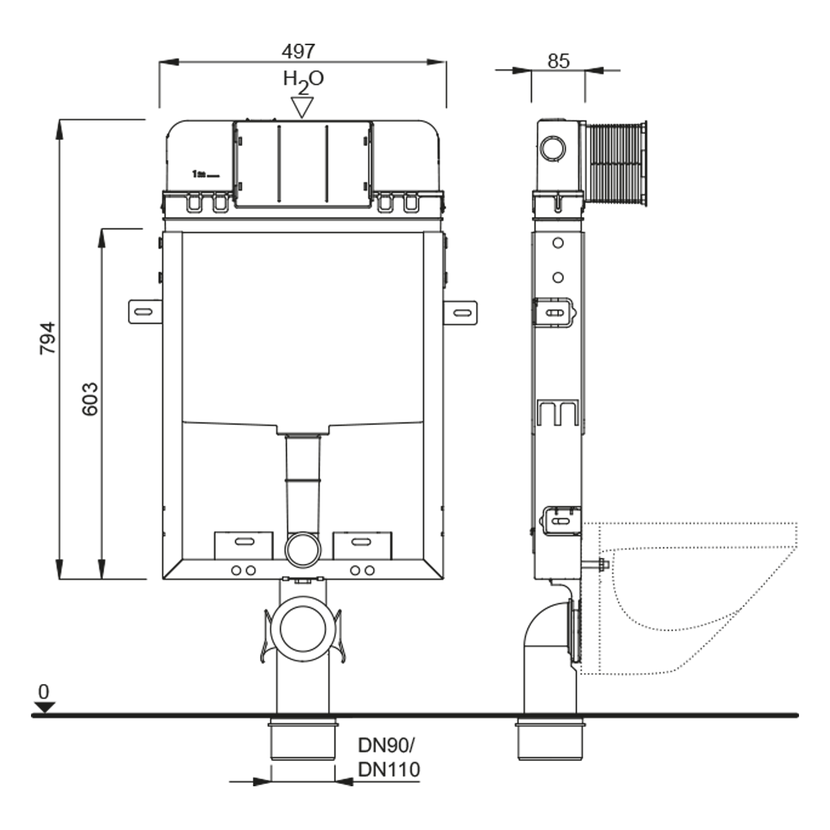 SCHWAB SET WC 199 podomítková nádržka pro zazdění 3/6l, DN110mm