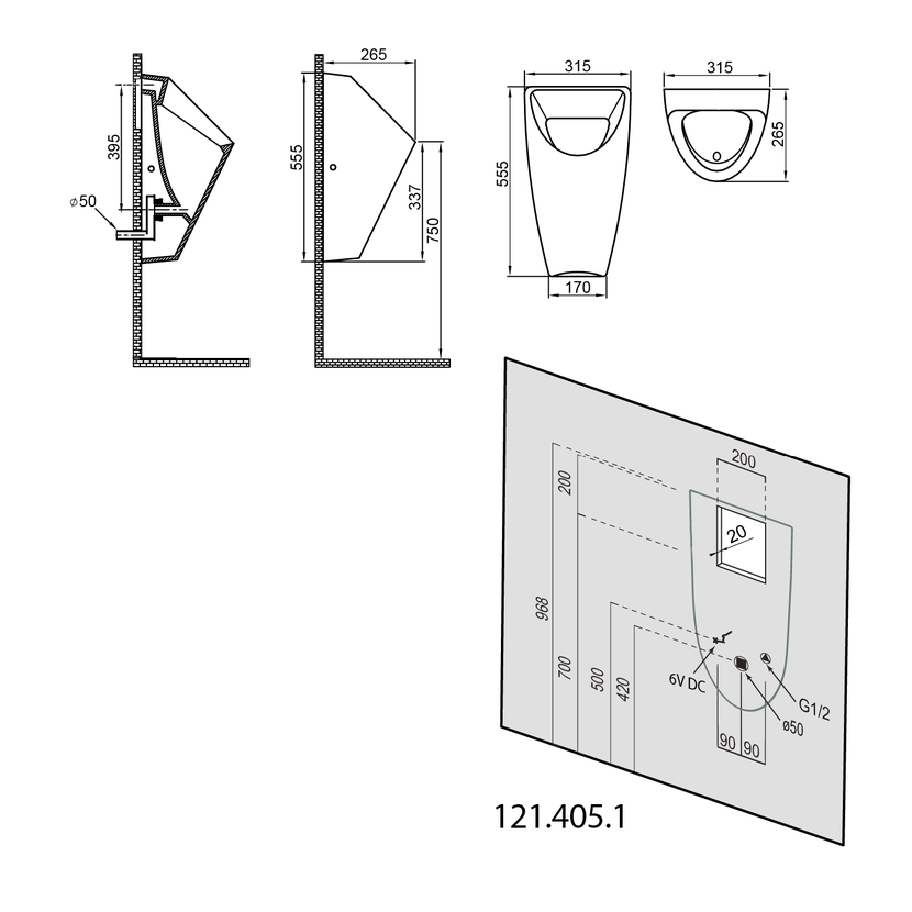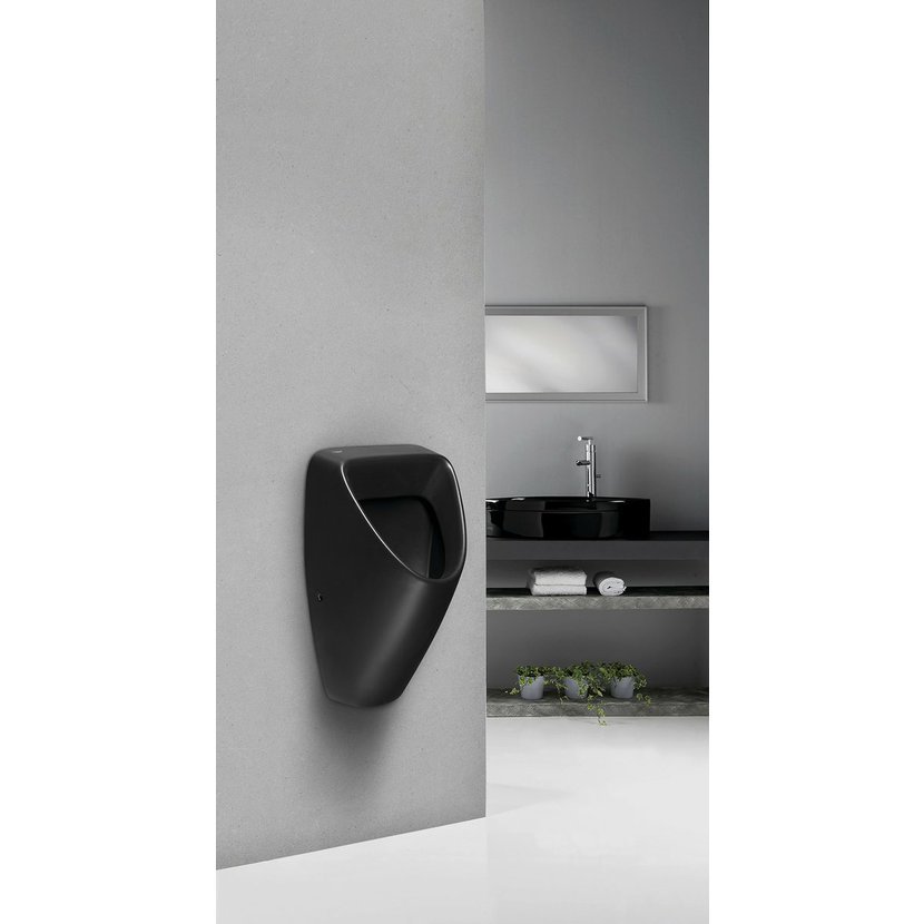 Parametry produktu  SCHWARN urinál s automatickým splachovačem 6V DC, zadní přívod, zadní odpad, černá matná