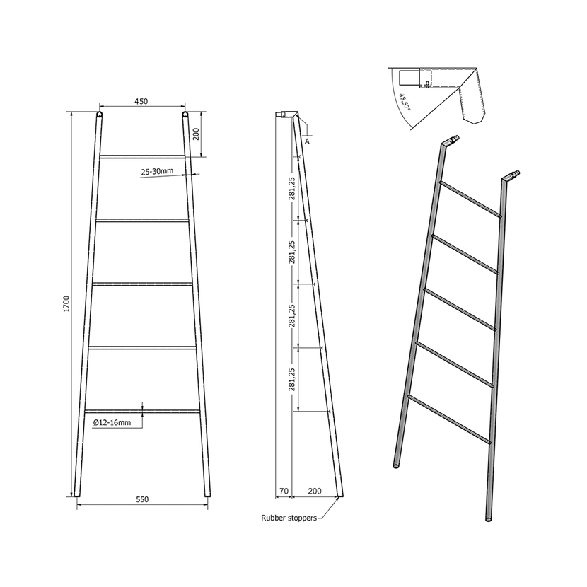 Parametry produktu  SEGA sušák ručníků na opření 550x1700x70mm, černá mat