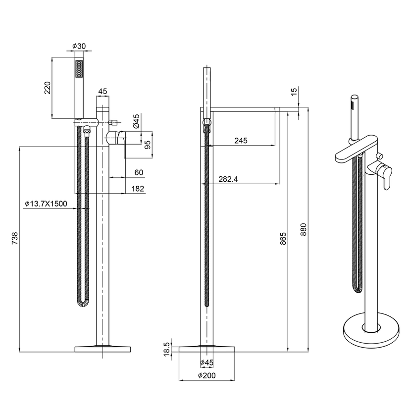 Parametry produktu  SEMA vanová baterie s připojením do podlahy, chrom