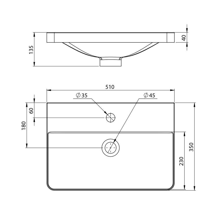 Parametry produktu SEN umyvadlo nábytkové, litý mramor, 51x35cm, bílá
