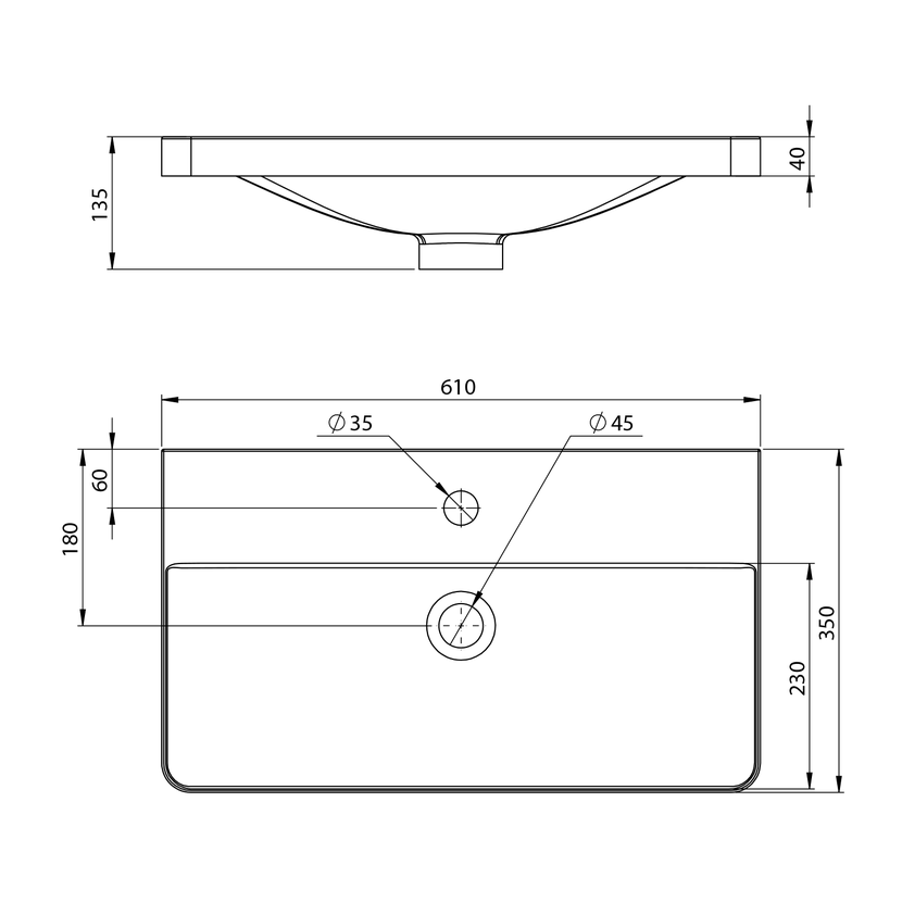 Parametry produktu SEN umyvadlo nábytkové, litý mramor, 61x35cm, bílá