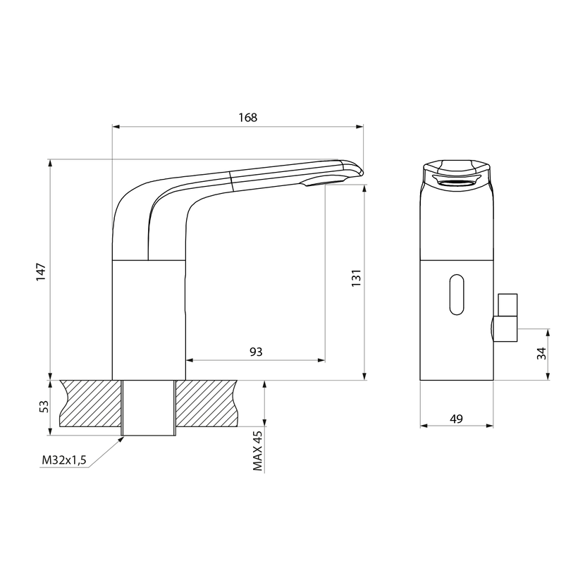 Parametry produktu  Senzorová stojánková baterie s regulací teploty, 6V DC (4xAA), chrom