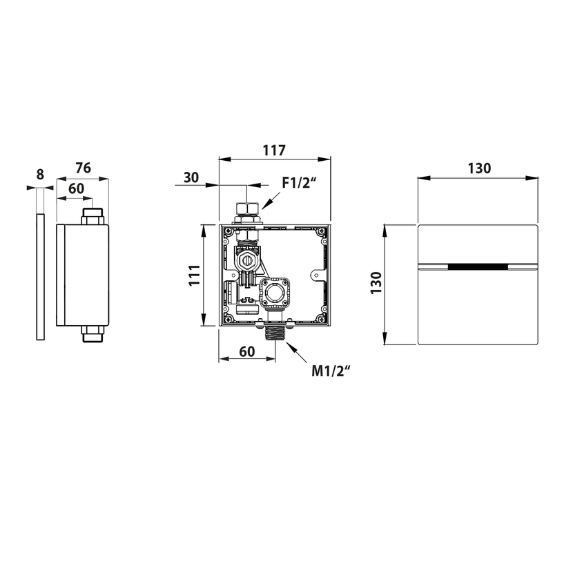 Parametry produktu  Senzorový splachovač urinálu 6V DC, nerez mat