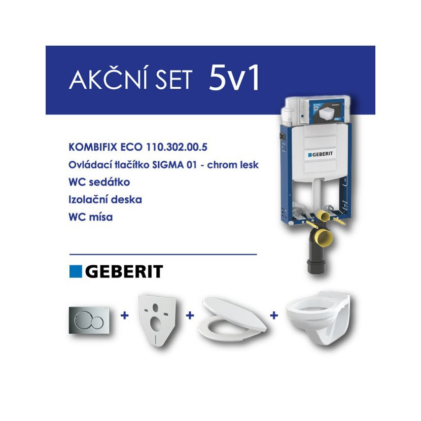 SET 5v1 GEBERIT KOMBIFIX ECO+SIGMA01 chrom lesk+sedátko SOFT CLOSE+WC mísa EUROLINE