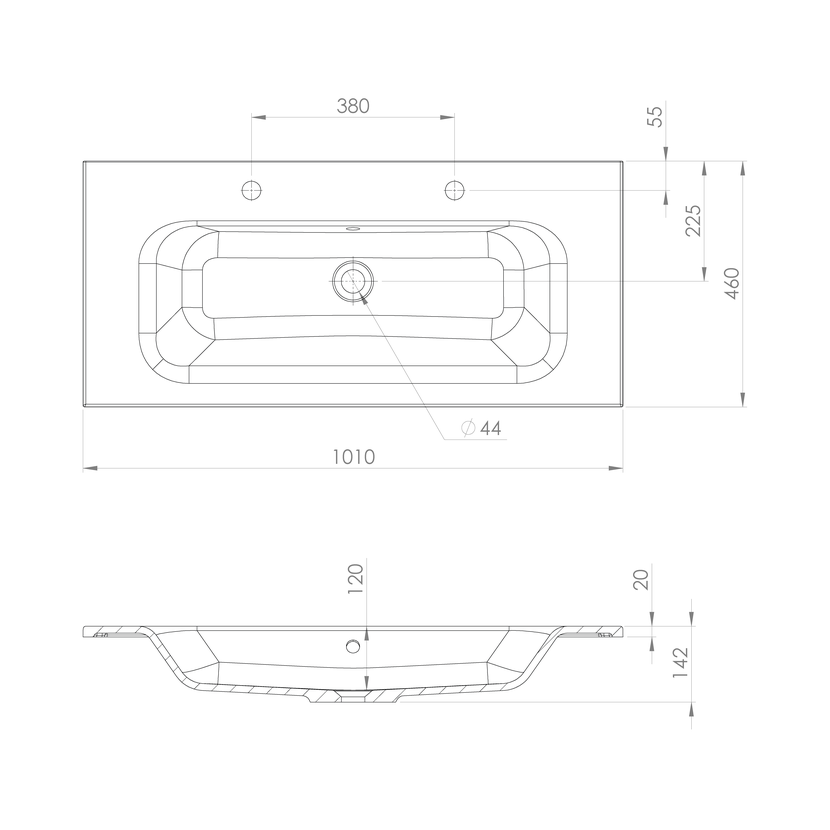 SIDRA umyvadlo, litý mramor, 101x46cm, 2 otvory pro baterii, bílá