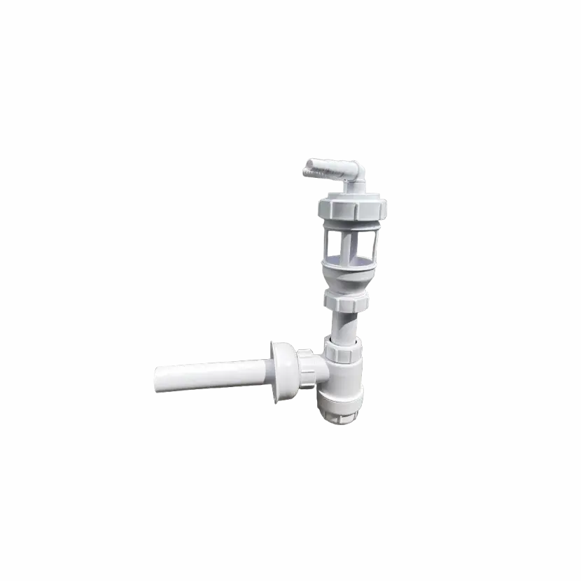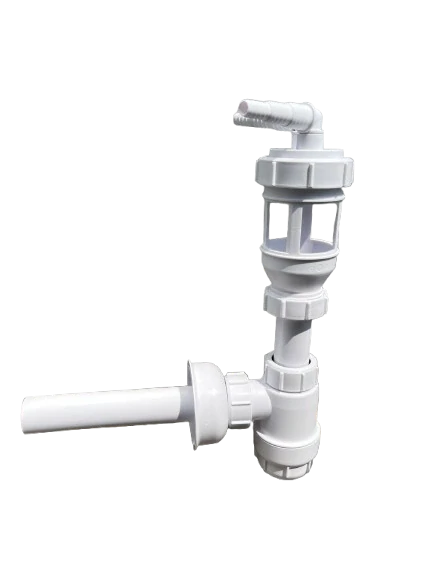 USTM sifon pro vypouštění prostředků z úpraven vody a zamezující kontaminaci vody bakteriemi. Sifon je z odolného bílého plastu a umožňuje připojení trubek 1/2" i 3/4".