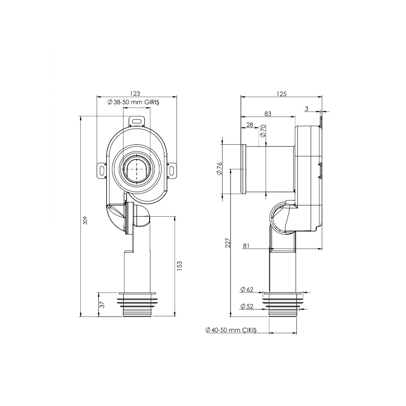 Parametry produktu  Sifon pro urinál, skrytý odpad s kloubem, DN50, plast