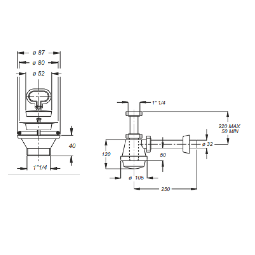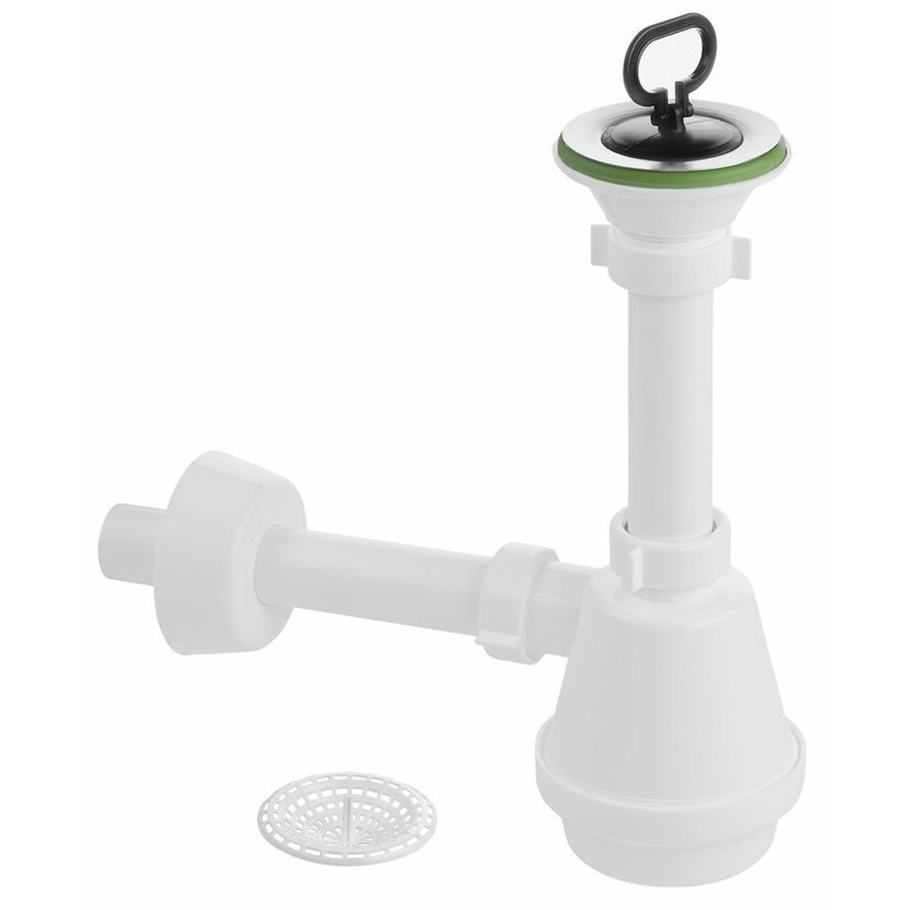 Parametry produktu  Sifon pro výlevku, nerez výpust 80mm, zátka s uchem, DN32, bílá