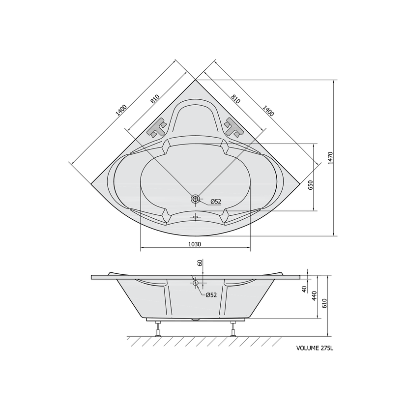 Parametry produktu  SIMONA rohová vana 140x140x44cm, bílá