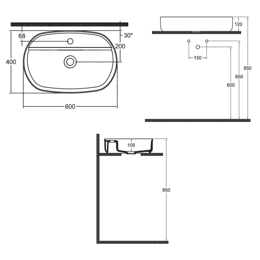 Parametry produktu  SINTESI keramické umyvadlo na desku, 60x40cm, bílá