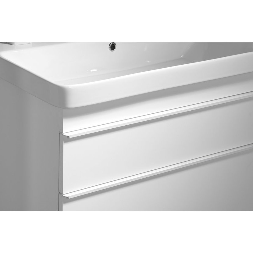 Série SITIA nabízí moderní vzhled díky tenké úchytce v matné bílé nebo černé barvě, umístěné po celé délce hrany zásuvek či dvířek. Použitím keramických umyvadel THALIE vytvoříme nadčasový koupelnový nábytek. Zásuvky jsou vybaveny výsuvy s pomalým dojezdem a automatickým dovřením, dvířka mají kování s tlumeným dovíráním. Horní i spodní zásuvky lze doplnit organizérem nebo miskami LINDO pro uložení předmětů každodenní potřeby. Série dále nabízí 2 rozměry doplňkových skříněk ve stejném designu.