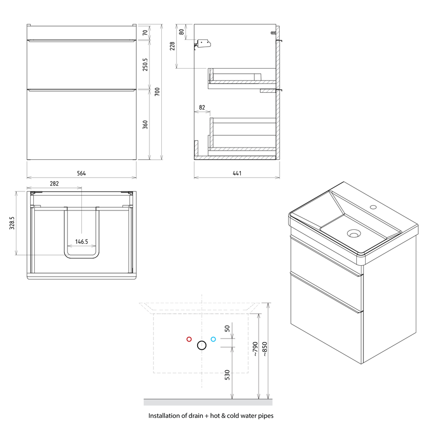 Nábytek je dodáván ve smontovaném stavu, připraven k okamžité instalaci. Nábytek instalujte na rovnou stěnu. Při zkroucení korpusu skříňky může dojít k poruše funkce dovíracích mechanismů. Nevystavujte nábytek trvalé vlhkosti a styku s vodou. Po použití koupelnu řádně odvětrejte. Proti případnému zatékání do skříňky použijte silikonový tmel.