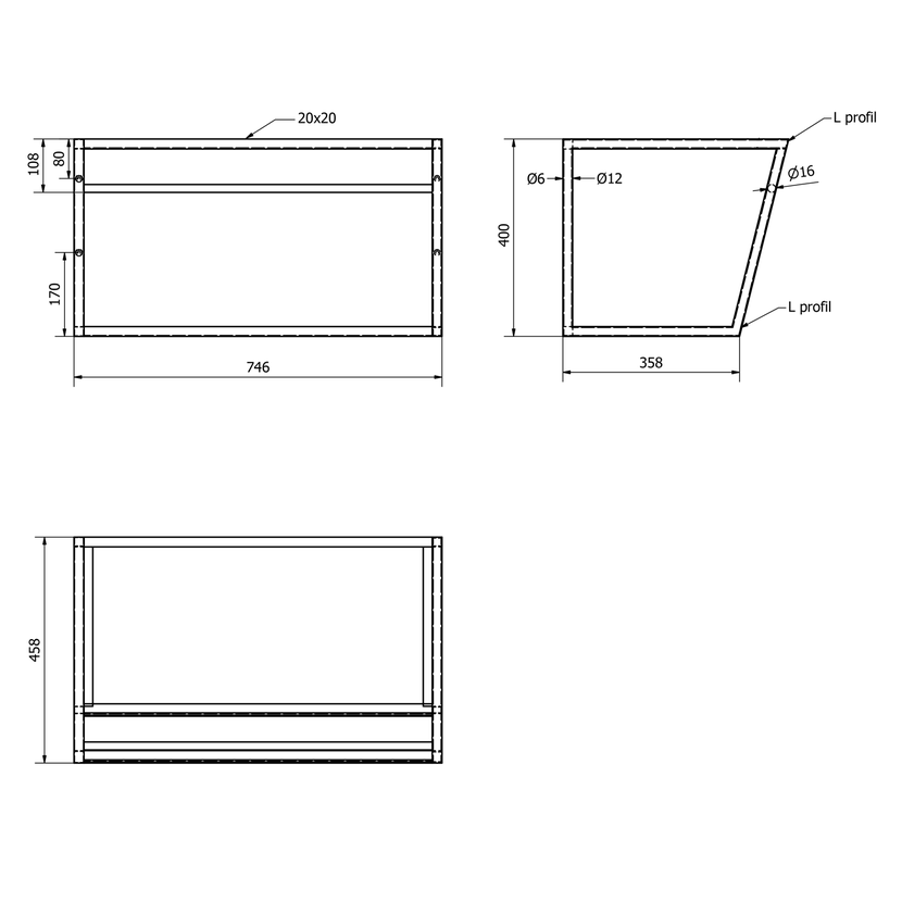 Parametry produktu SKA konzole s policí 750x400x460mm, černá mat