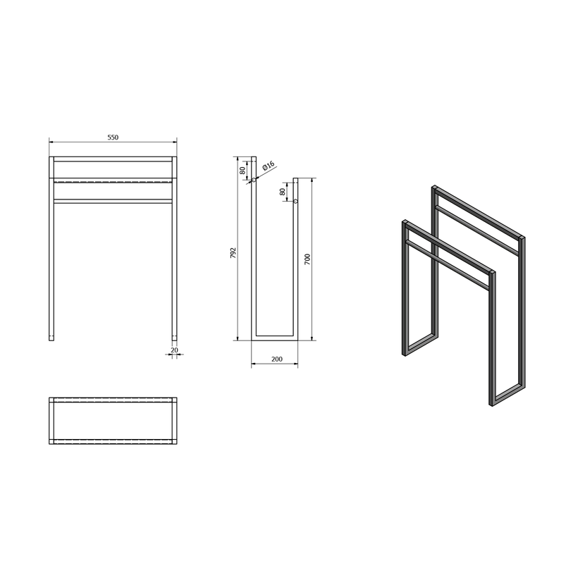 Parametry produktu SKA stojan na ručníky 550x790x200mm, bílá mat