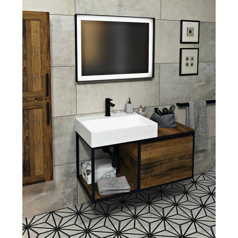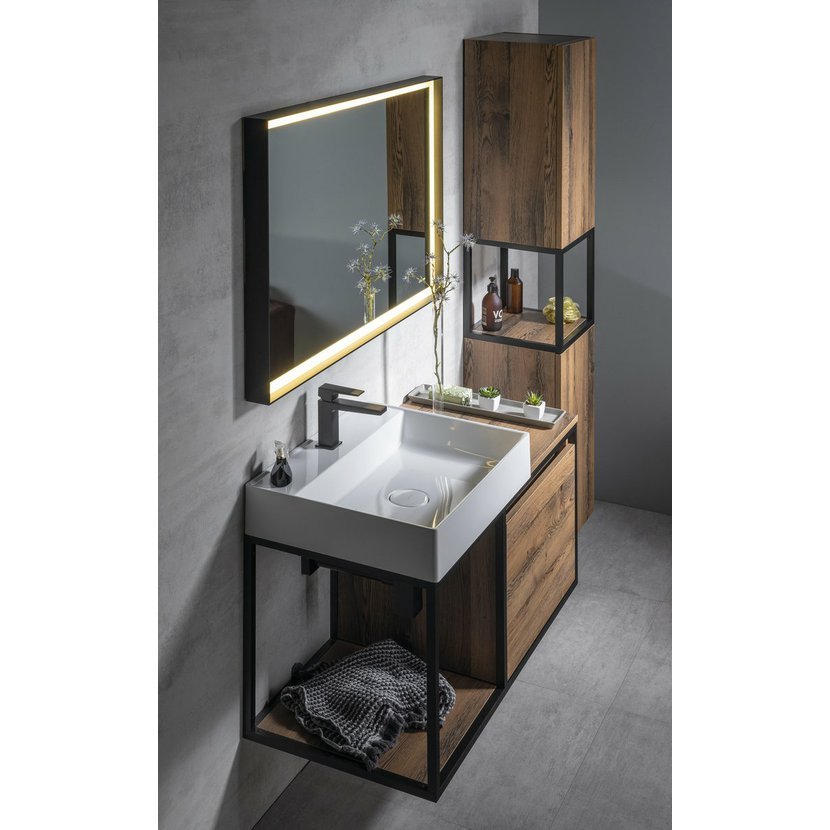 Konstrukce ze série SKARA jsou vhodné do koupelen zařizovaných v moderním i industriálním stylu. Skvěle je doplní vysoká skříňka SKARA ve stejném dekoru nebo skříňky a zrcadla TREOS s rámem v dřevěném dekoru. Perfektní je i kombinace s podsvíceným zrcadlem SORT v černém hliníkovém rámu.