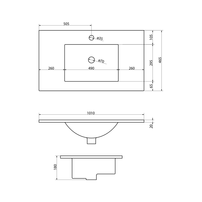 Parametry produktu  SLIM keramické umyvadlo, nábytkové, 100x46,5cm, bílá
