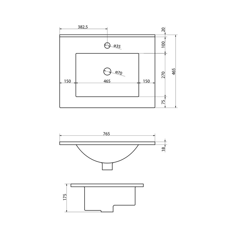 Parametry produktu  SLIM keramické umyvadlo, nábytkové, 76x46,5cm, bílá