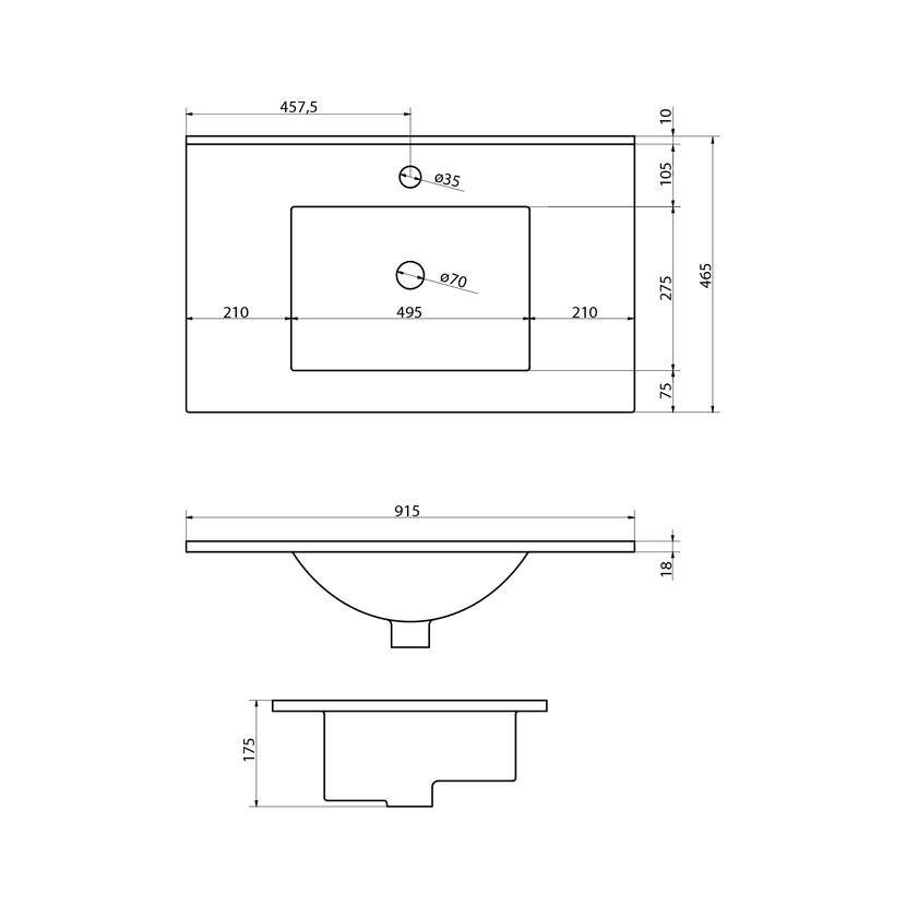 Parametry produktu  SLIM keramické umyvadlo, nábytkové, 90x46,5cm, bílá