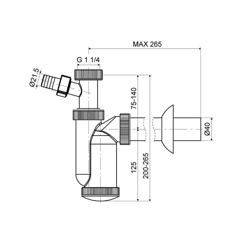 SLOVARM T-1016/I DN40 umyvadlový 1/2 sifon s odbočkou 621560