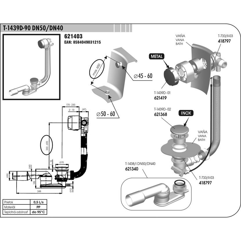 SLOVARM T-1438AD DN50/40 vanový sifon s napouštěním přes přepad 621156