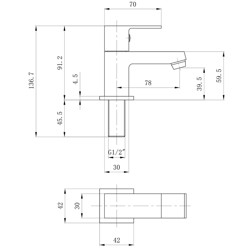 Parametry produktu SMALL stojánkový umyvadlový ventil, 92mm, chrom