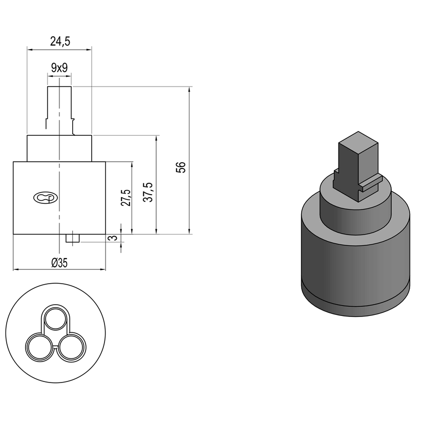 Parametry produktu  Směšovací kartuše 35mm, nízká