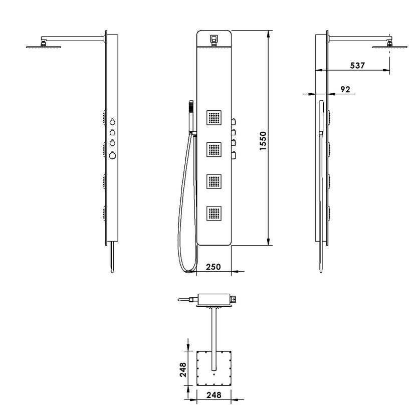 Parametry produktu  SPIRIT SQUARE termostatický sprchový panel 250x1550mm, černá